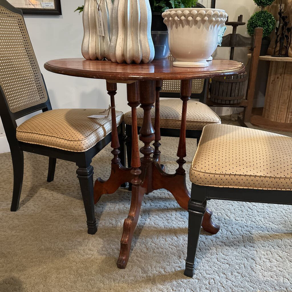 Antique Victorian Style Round Carved Mahogany Center Side Table