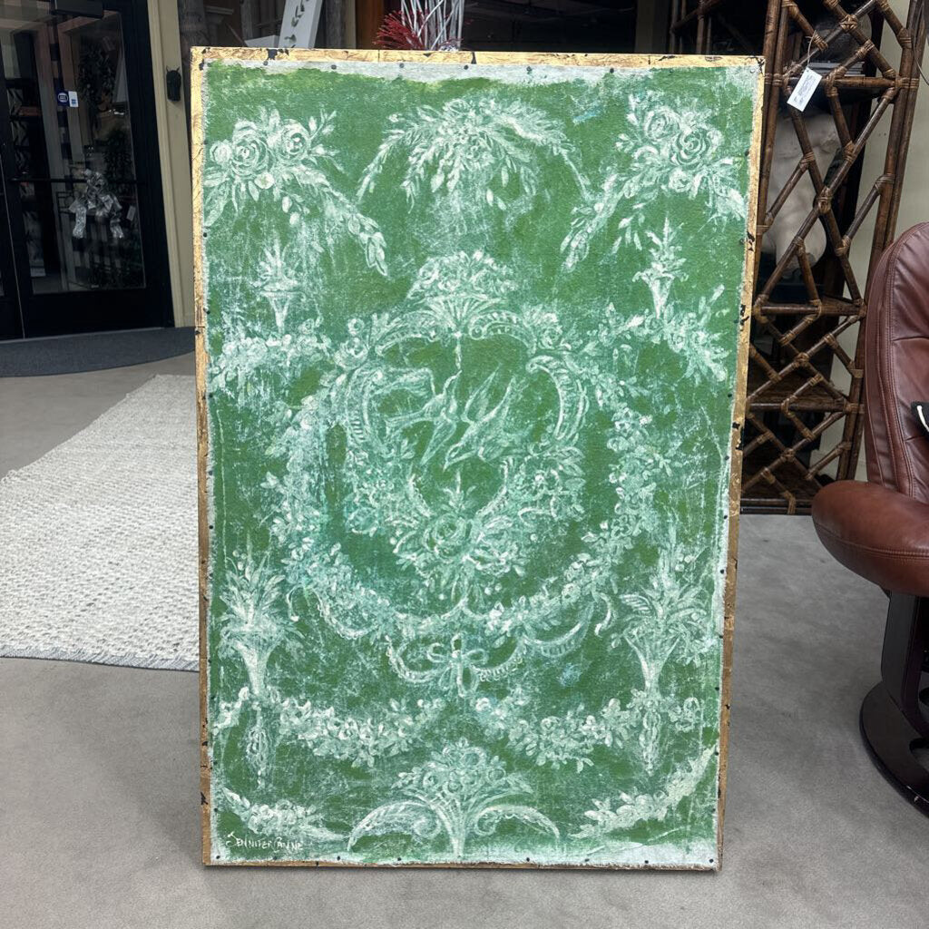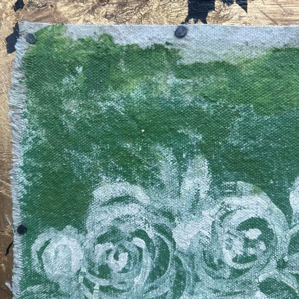 3" gold leaf edging distressed canvas tacked to cradled wood